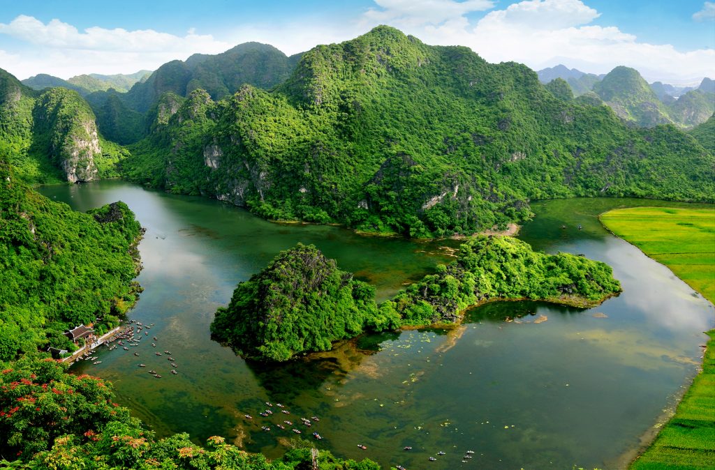 13h30: Quý khách tiếp tục hành trình đến Tràng An, Di sản Thế giới được UNESCO công nhận vào năm 2014. Tại đây, quý khách có 1,5 tiếng tham quan trên thuyền nan để thưởng ngoạn vẻ đẹp thiên nhiên với hệ thống hang động đường hầm kỳ vĩ đã từng xuất hiện trong “Skull Island, phiên bản mới của Kong năm 2016.